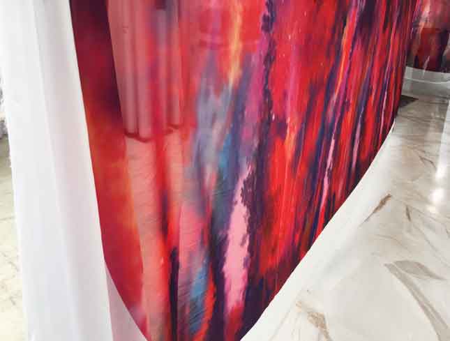 La clave de la chifon estampada o gasa shifonne es su comportamiento único reside en su proceso de fabricación, específicamente en el uso de hilos de alta torsión, comúnmente denominados hilos crepados.