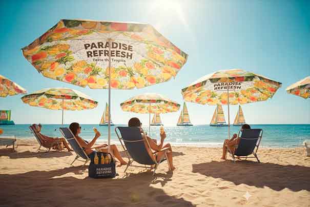 Personalización Sin Límites: El diseño lo pone usted. Envíenos su archivo y nosotros lo haremos realidad. Toldos elegantes, tela para sombrilla con su Logo, campañas completas, arte abstracto... cualquier visión es posible sin restricciones de color o complejidad.