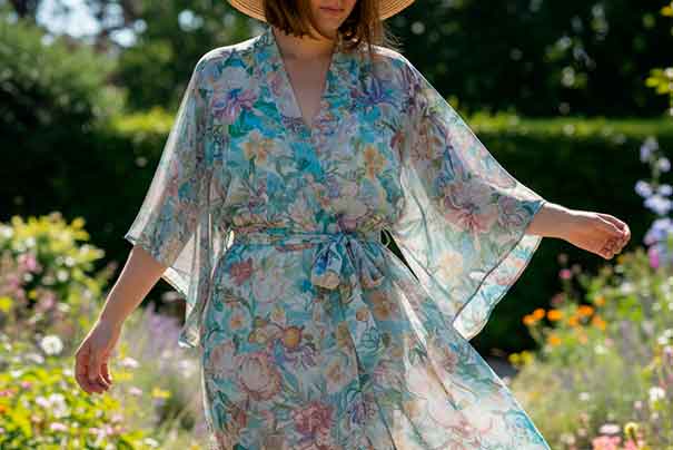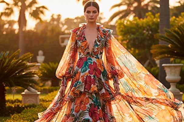 El proceso consiste en torcer fuertemente los hilos de seda, algodón o fibras sintéticas antes de tejerlos en un patrón liso. Esta alta torsión es la causa directa de las propiedades aparentemente paradójicas del chifón. Por un lado, crea una superficie con una textura sutilmente áspera o "arenosa" al tacto, perceptible a microescala. Por otro lado, esta misma estructura de hilos torcidos evita que las fibras se adhieran entre sí, lo que permite que la tela en su conjunto se mueva con una libertad y fluidez extraordinarias. El resultado es una caída descrita como "volátil" y "lánguida", que reacciona al más mínimo movimiento del aire, creando los efectos visuales etéreos por los que es tan apreciado. A esta cualidad se suma un brillo sutil y difuso, que lo distingue claramente del lustre intenso de otros tejidos como el satén o el charmeuse.